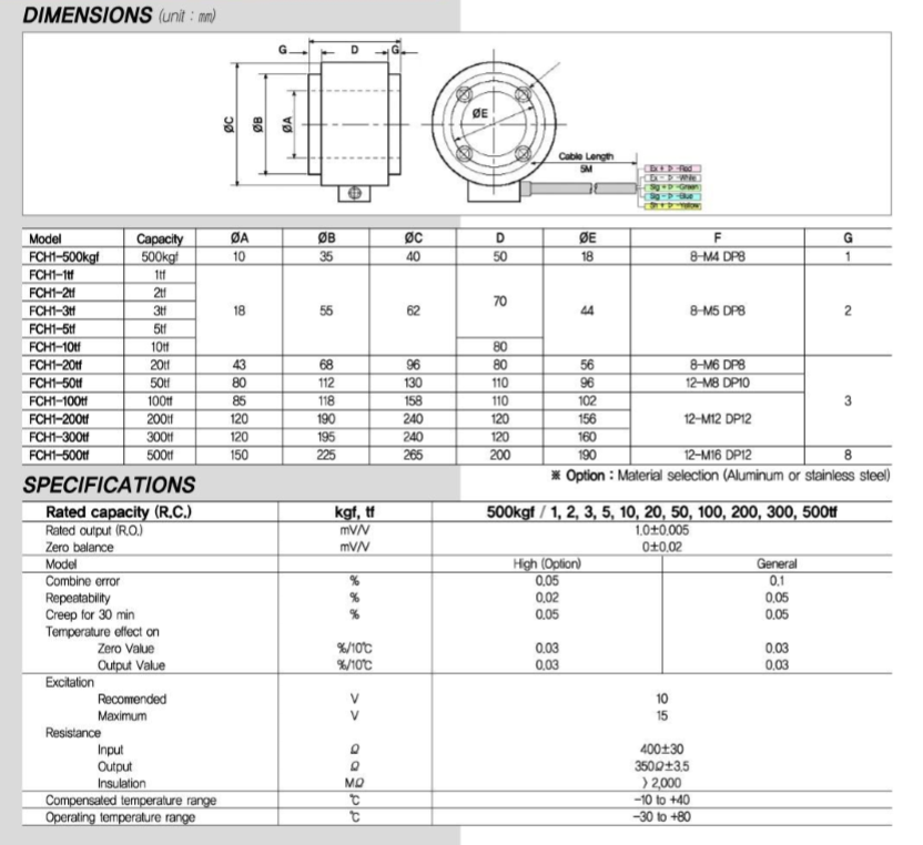 【FCH1傳感器】FCH1-500kgf~500tf_韓國Fine稱重傳感器