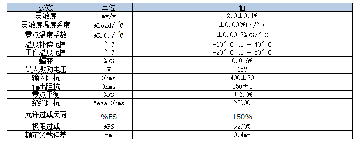 FCAL稱重傳感器技術(shù)參數(shù):