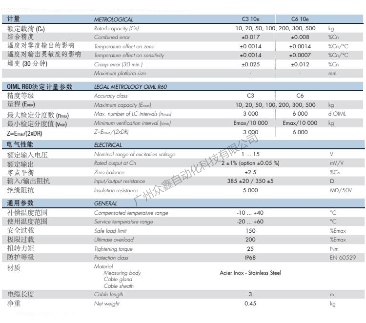 五、法國世感Scaime品牌 F60X稱重傳感器技術(shù)參數(shù)