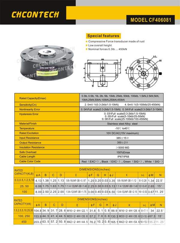 廣州眾鑫自動化科技有限公司】專業(yè)供應(yīng)美國chcontech CF406081系列稱重傳感器,【CF406081輪輻式傳感器】CF406081-0.3klb~100klb_