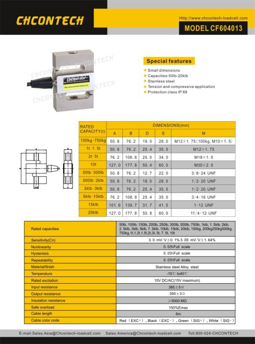以上是【CF604013拉式傳感器】CF604013-100kg~10t_美國chcontech稱重傳感器詳細(xì)信息,如果您對【CF604013拉式傳感器】CF604013-100kg~10t_美國chcontech稱重傳感器的價(jià)格、貨期、型號、庫存有什么疑問,歡迎撥打18520271262陳工獲取【CF604013拉式傳感器】CF604013-100kg~10t_美國chcontech稱重傳感器的最新價(jià)格詳情。