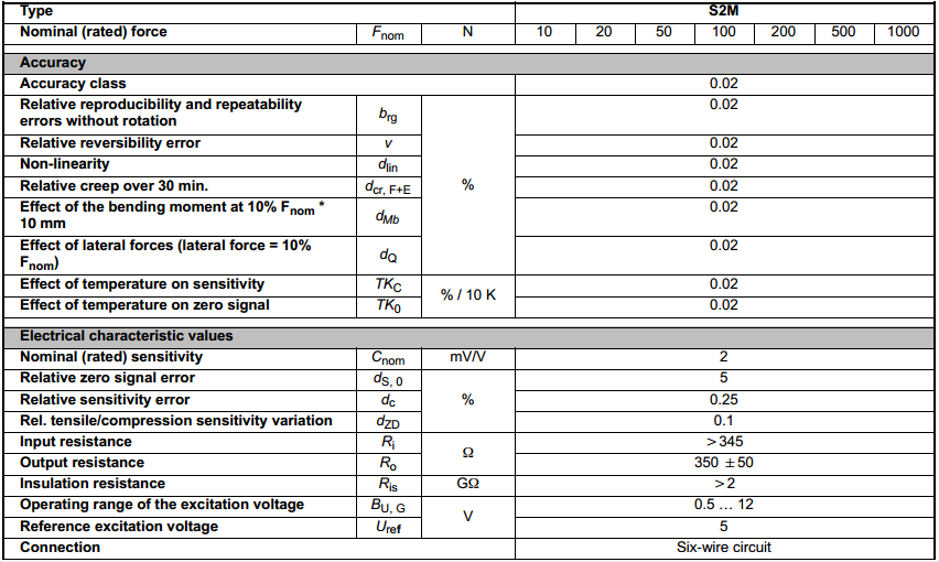 1-S2M力傳感器技術(shù)參數(shù)