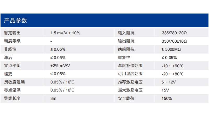四、CR1壓力傳感器技術(shù)參數(shù)