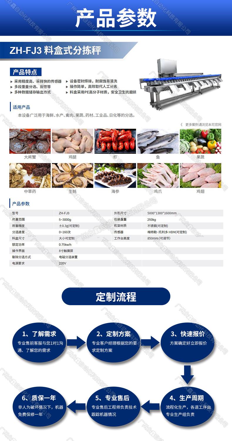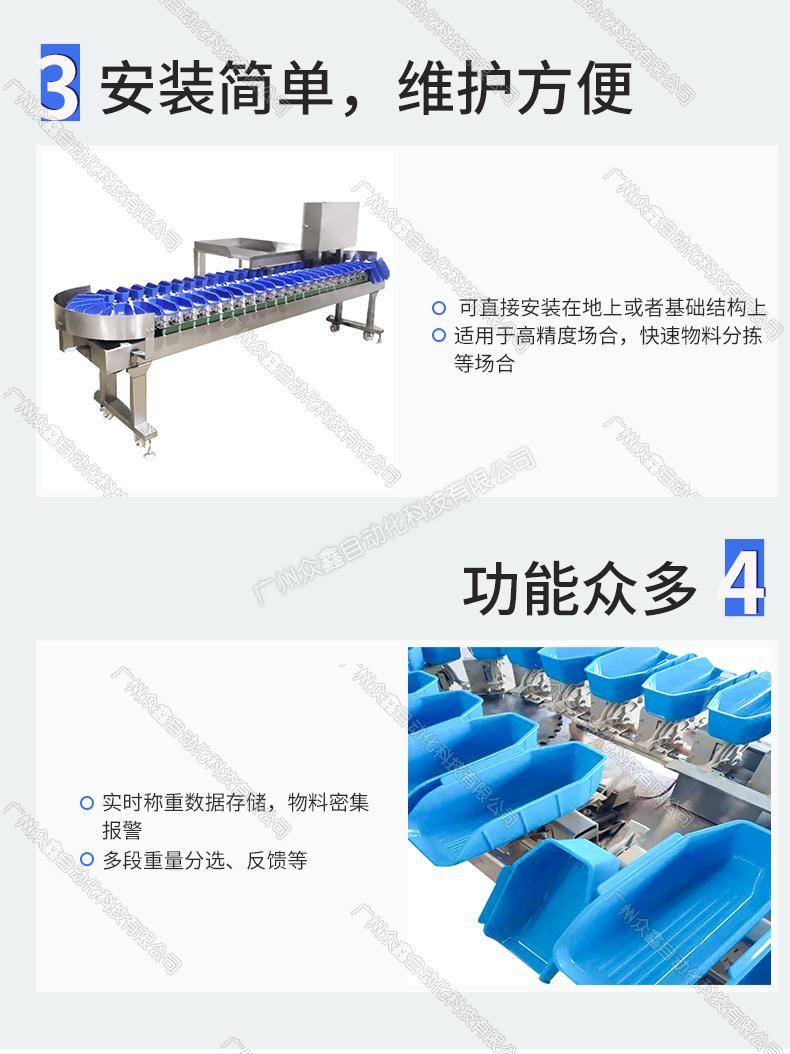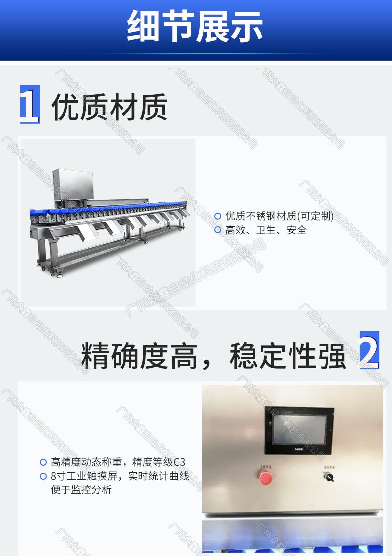 7、本設備廣泛用于海鮮、水產、禽肉、果蔬、藥材、工業(yè)品、日化等行業(yè)的分選
