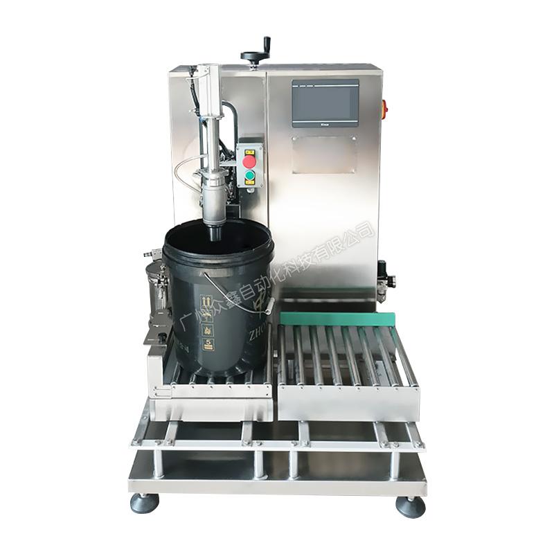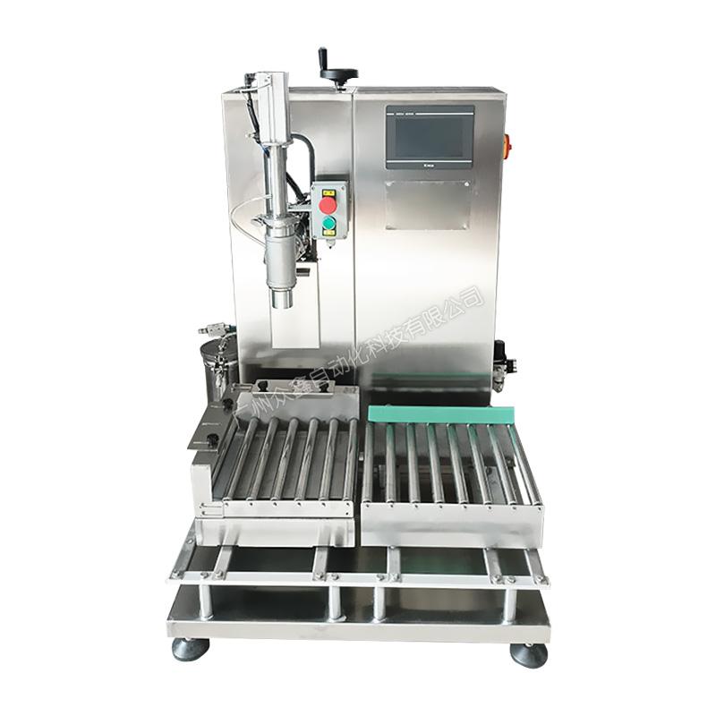 物料自流到灌裝機(jī)的進(jìn)口管道,氣動(dòng)雙閥門控制灌裝流速,先快后慢,稱重式灌裝,灌裝完畢,灌裝嘴不滴漏。機(jī)器主體采用不銹鋼材質(zhì)。灌裝容量10-25L。此型號(hào)可灌注大部分高低粘度,無(wú)顆粒、非爆性液體,廣泛應(yīng)用于潤(rùn)滑油,液壓油,防凍液,玻璃水,聚氨酯,化妝品日化等行業(yè)。
