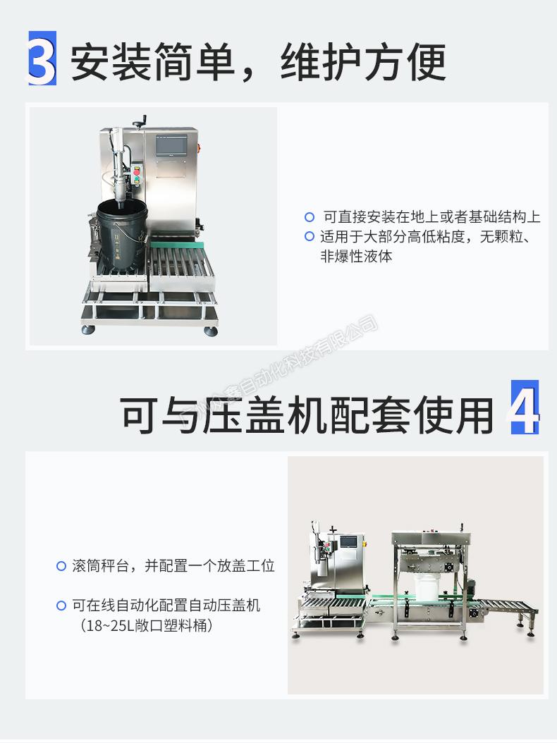 3、輥筒秤臺(tái),并配置一個(gè)放蓋工位,可在線自動(dòng)化配置自動(dòng)壓蓋機(jī)(18-25L敞口塑料桶);