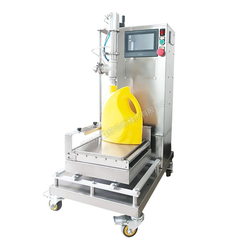 泵送料到灌裝機(jī)的進(jìn)口管道,變頻器控制泵的流速,先快后慢,稱(chēng)重式灌裝。機(jī)器主體采用不銹鋼材質(zhì),灌裝容量1-25L。此型號(hào)機(jī)器可灌注大部分高低粘度,無(wú)顆粒、非爆性液體,廣泛應(yīng)用于潤(rùn)滑油、液壓油、切削液、防凍液、玻:璃水、聚氨酯、化妝品日化等行業(yè)。