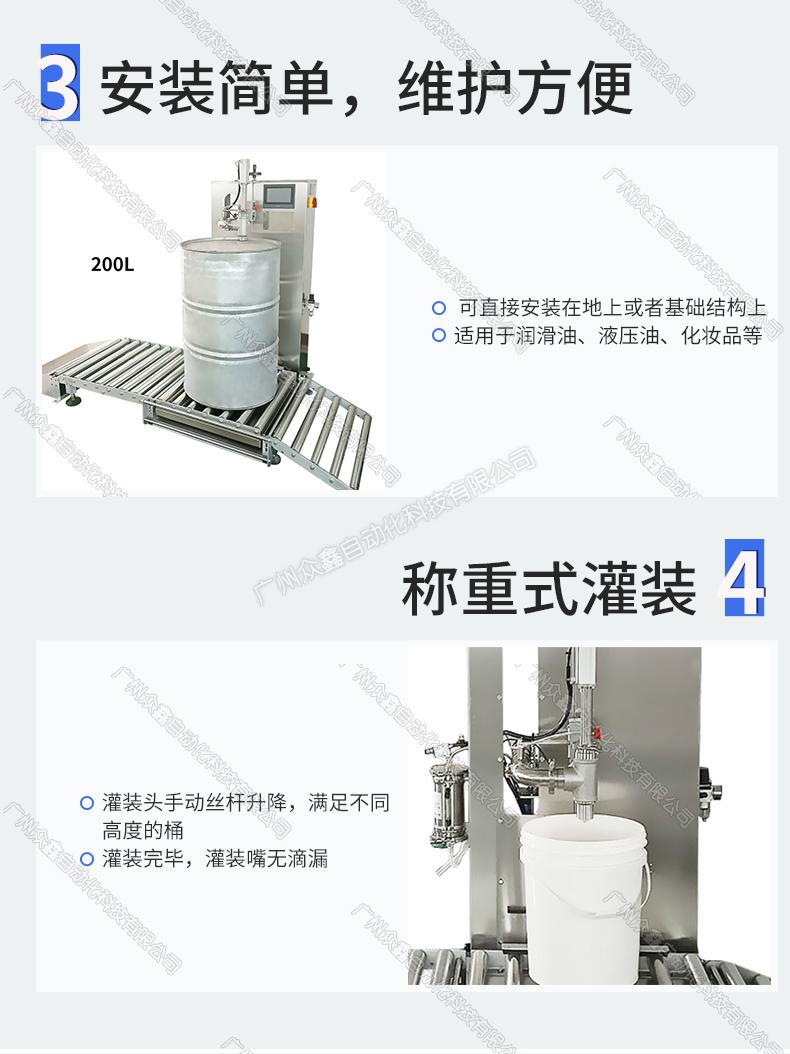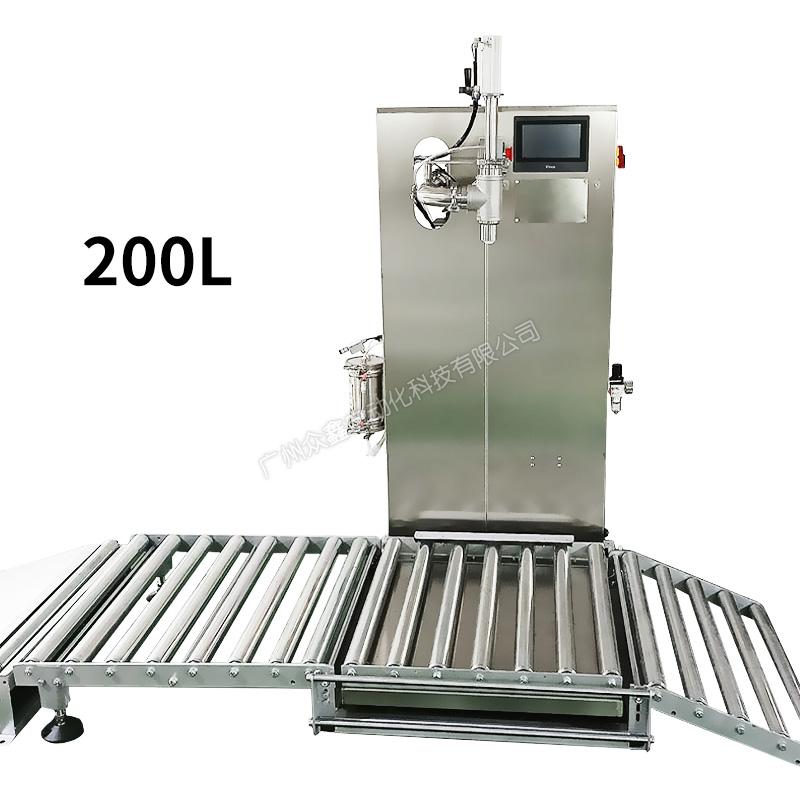 泵送料到灌裝機的進口管道,變頻器控制泵的流速,先快后慢,稱重式灌裝。機器主體采用不銹鋼材質,灌裝容量200/15-200L。此型號機器可灌注大部分高低粘度,無顆粒、非爆性液體,廣泛應用于潤滑油、液壓油、切削液、防凍液、玻璃水、聚氨酯、化妝品日化等行業(yè)。