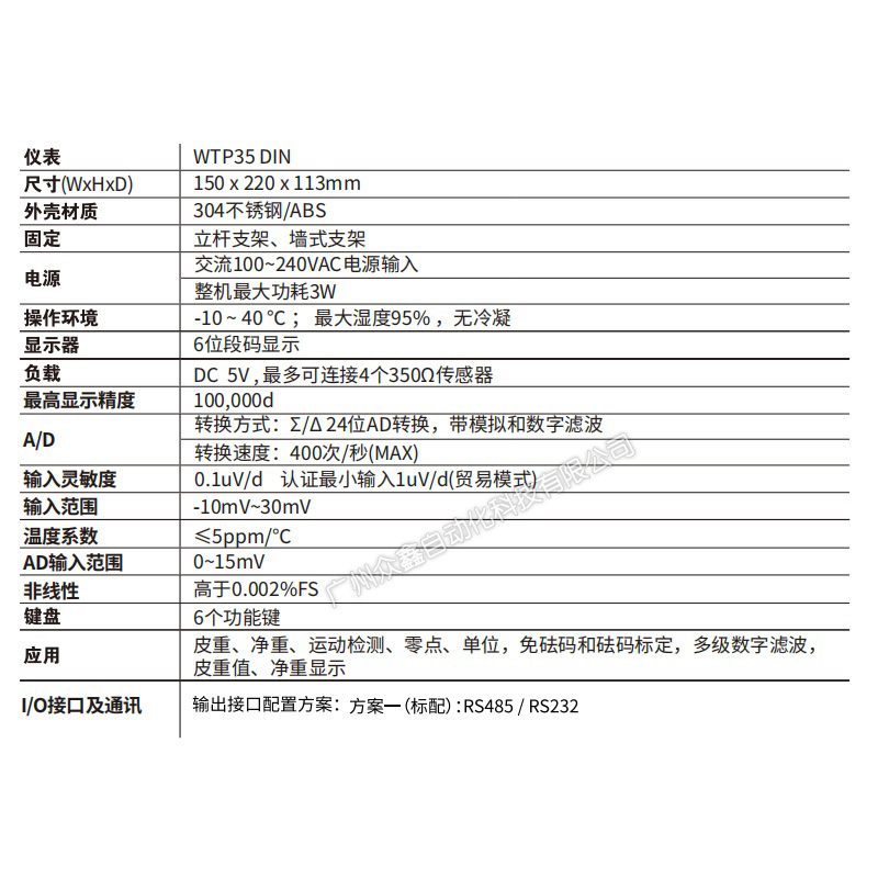 三、WTP35 DIN過程稱重顯示控制器技術(shù)參數(shù)