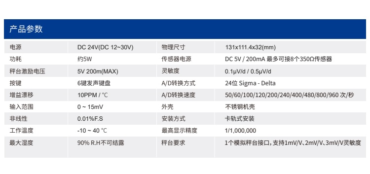 四、DZM-X1稱重變送模塊產(chǎn)品參數(shù)