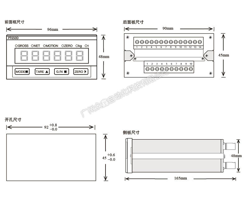 三、PT650D稱重顯示器產(chǎn)品尺寸