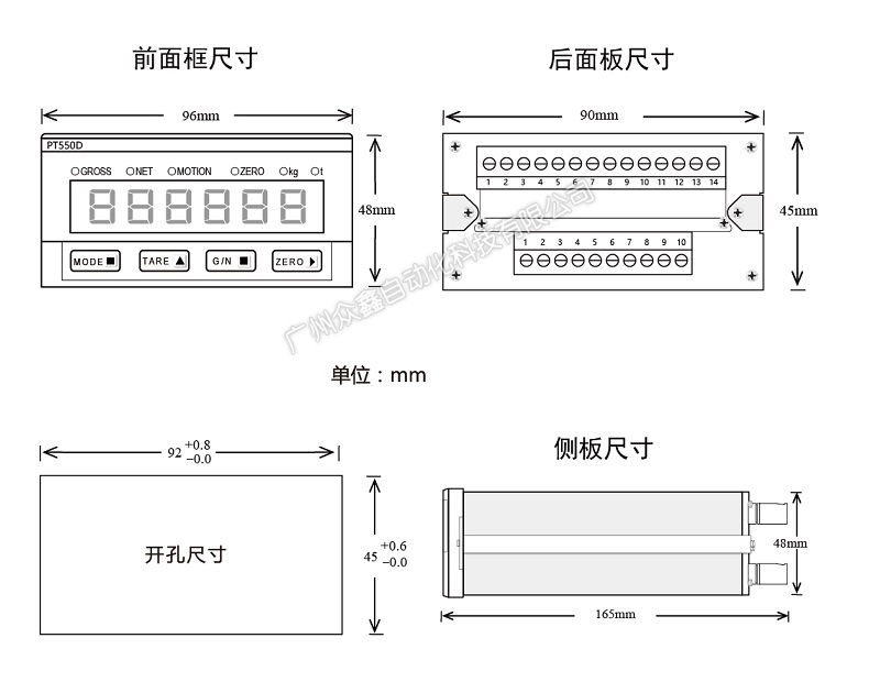 三、PT550D稱重變送儀表產(chǎn)品尺寸