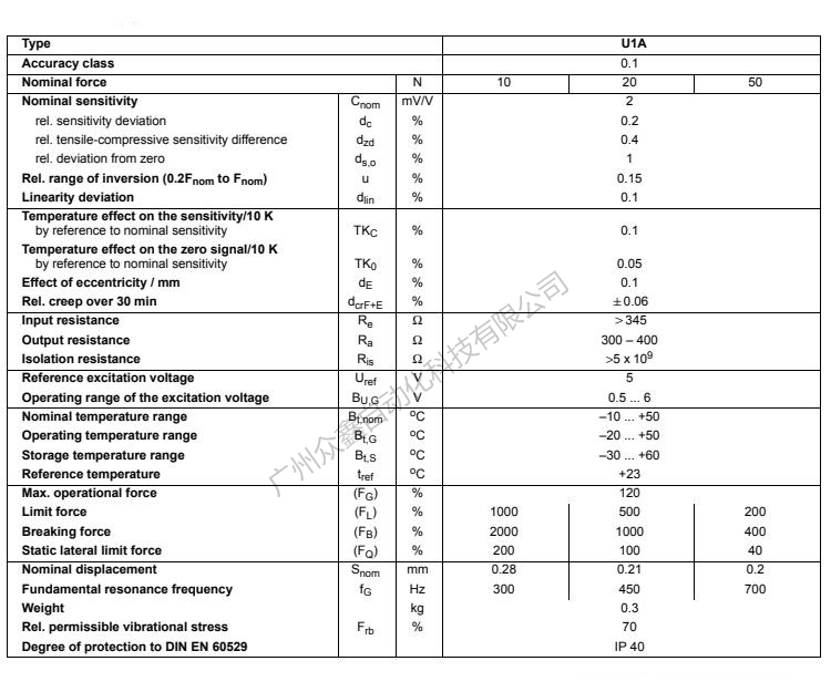 二、U1A/50N力傳感器相關(guān)量程