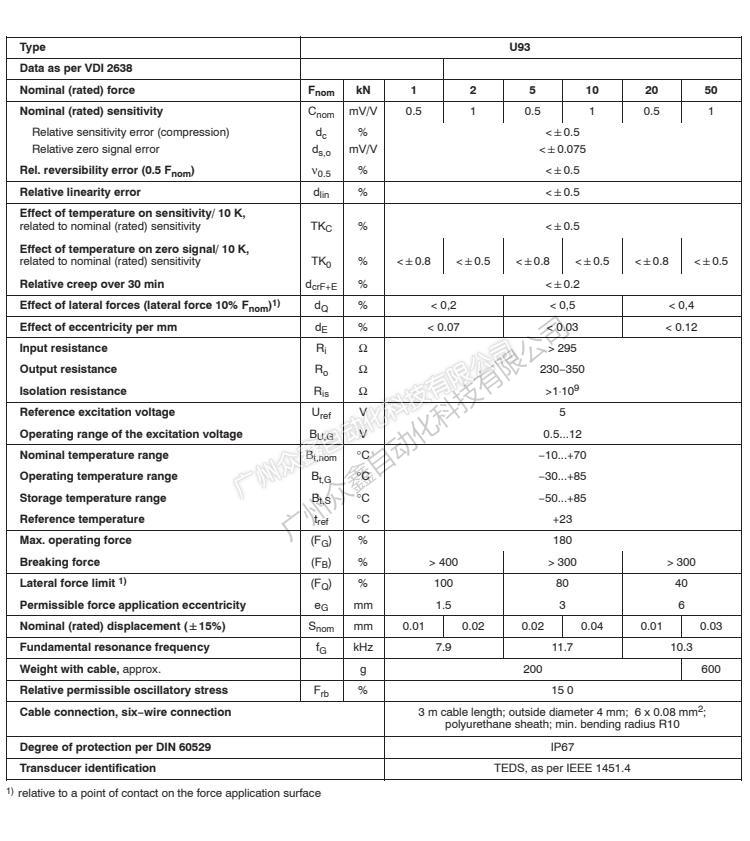 五、U93力傳感器技術(shù)參數(shù)