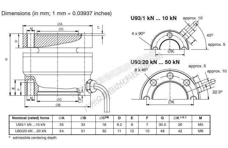 二、U93/50KN力傳感器相關(guān)量程