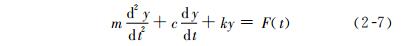 眾所周知,在電氣系統(tǒng)中具有R、L、C 的電路呈現(xiàn)二階頻率響應(yīng)。同樣,對于具有阻尼、質(zhì)量和彈簧的機(jī)械系統(tǒng)(圖2-6),如測力和測量震動的傳感器,也有類似的特性。根據(jù)力平衡原理,可列出微分方程