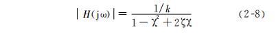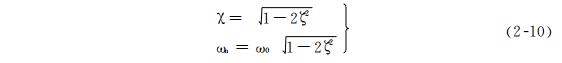 由圖可見,頻率特性與兩個(gè)參數(shù)有關(guān),即無阻尼的固有頻率 ω0(在 χ = 1 處)和比阻尼系數(shù)ζ,同時(shí)可以看出諧振峰值大小和諧振頻率 ω n 隨 ζ 而變化 ,對式(2-9) 進(jìn)行微分,并使之等于零,可得