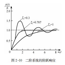 圖2-10表示二階系統(tǒng)的階躍響應(yīng)曲線,圖中 ζ =0.707的曲線表示臨界阻尼狀態(tài)。比較三條曲線可以看出,臨界阻尼具有最小的穩(wěn)定時(shí)間,ζ 越小則上升時(shí)間越短。從響應(yīng)時(shí)間角度看來,臨界阻尼并不是最佳狀態(tài)。分析表明: ζ 越小則瞬時(shí)過沖量越大,因此實(shí)際中一般選擇 ζ為0.5~0.7,以便能在允許過沖量條件下得到最小的響應(yīng)時(shí)間。比較圖2-7和圖2-10可以看出,較小的 ζ值具有較寬的頻帶(3dB)帶寬,故上升時(shí)間與帶寬有關(guān) 。