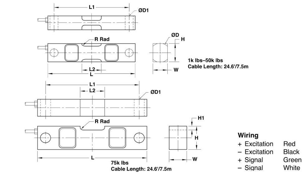 軸銷式稱重傳感器外觀尺寸