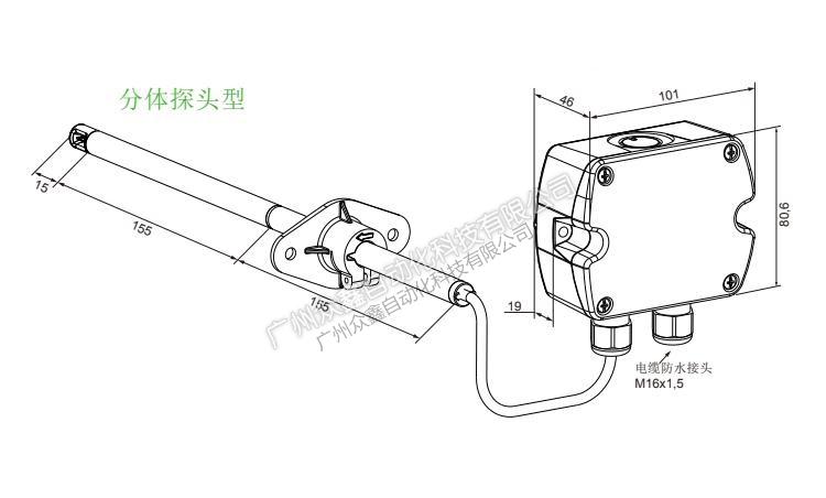 EE650-T3A6L300K2變送器, 4-20MA模擬輸出,探頭長度300mm,線長2M