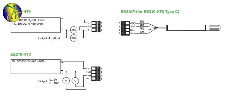 奧地利E+E EE210系列溫濕度傳感器電路連接圖