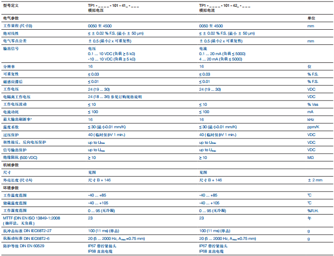 德國NOVOTECHNIK位移傳感器TP1系列產(chǎn)品參數(shù):