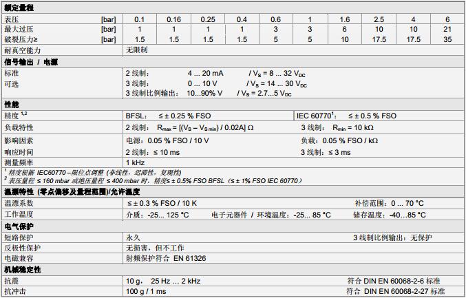 18.601G系列德國(guó)BD壓力變送器指標(biāo)